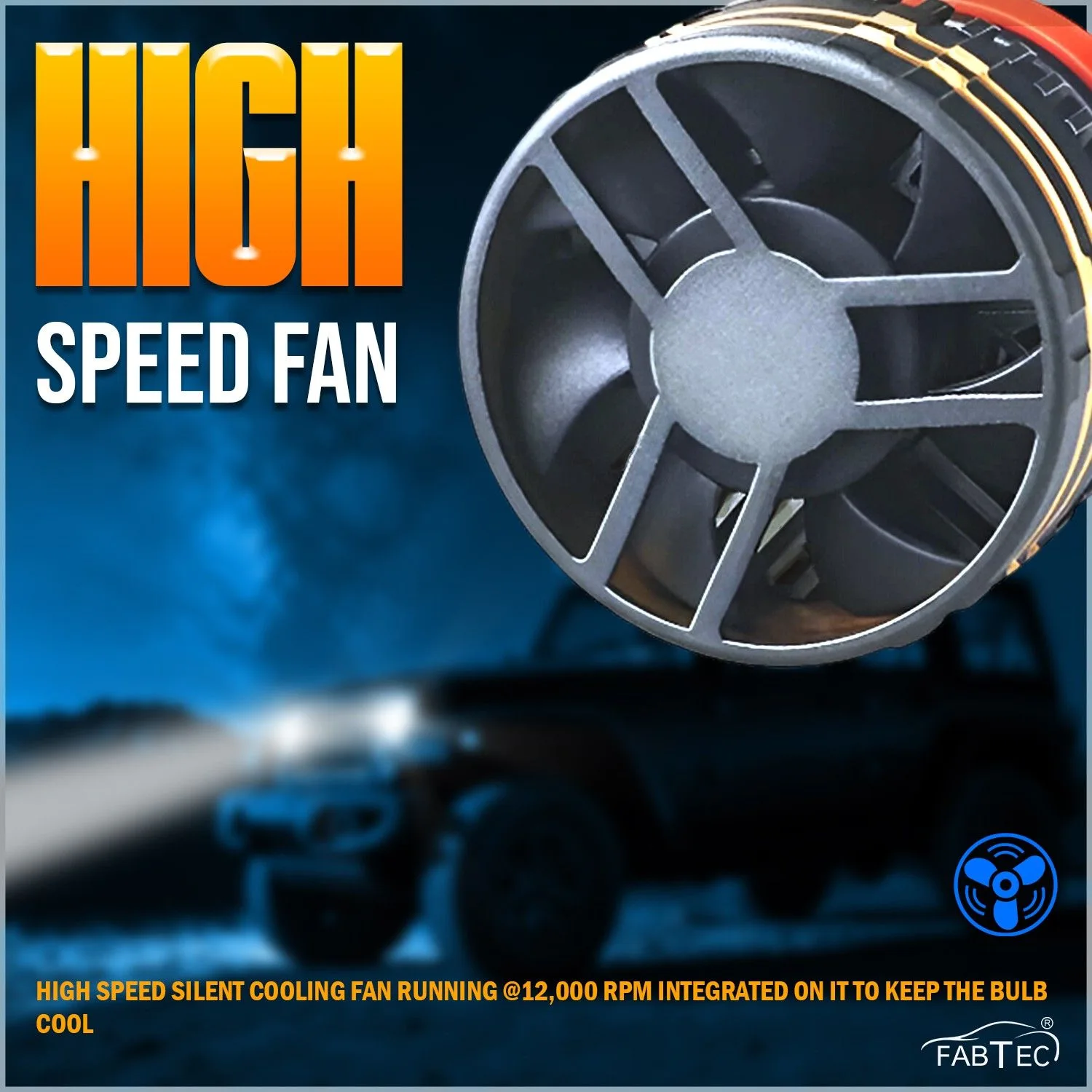 • Aviation aluminum 6063 body, and 8000RPM turbo cool fan provide super cooling ability, which ensures a longer lifespan up to 50,000 hours. 5 times longer life span than halogen bulb.