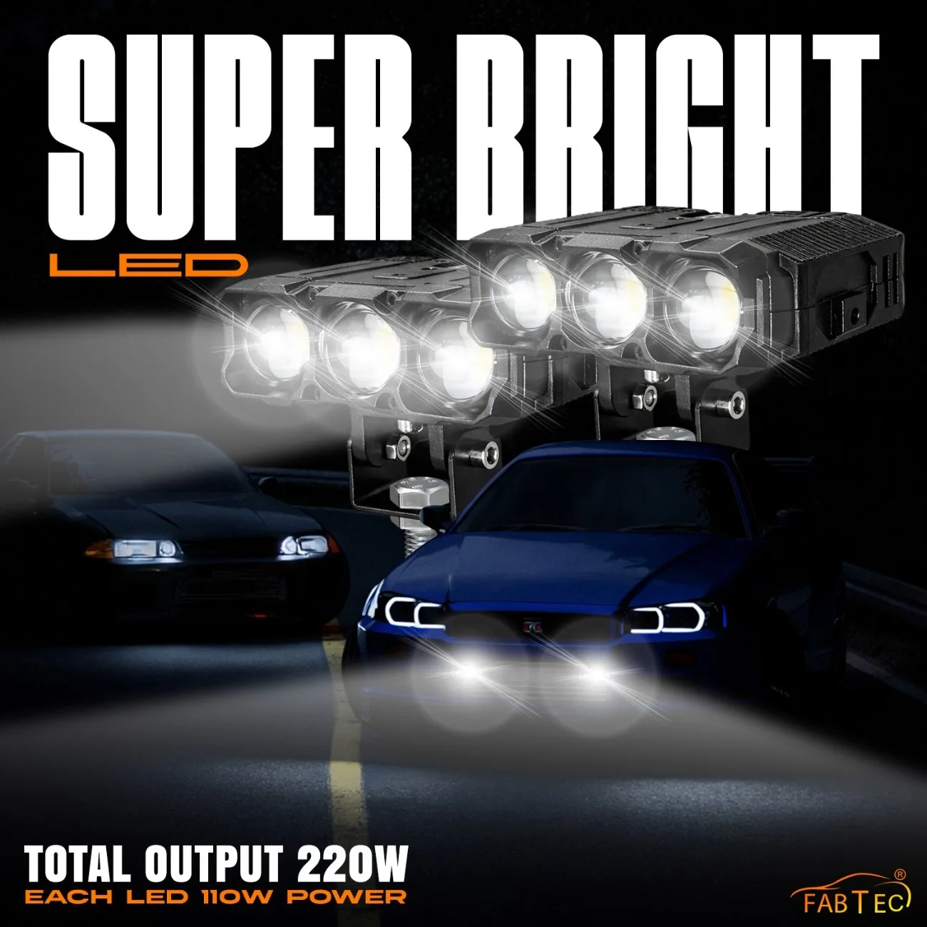 Fabtec brings premium quality, 220 WATTS high power laser projector lens fog lights for car. compact design with external adapter and dual fan technology making it usable for long hours by managing the heat even after long hours of use.