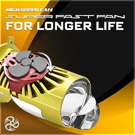 • Aviation aluminum 6063 body, and 8000RPM turbo cool fan provide super cooling ability, which ensures a longer lifespan of up to 50,000 hours. 5 times longer life span than a halogen bulb.