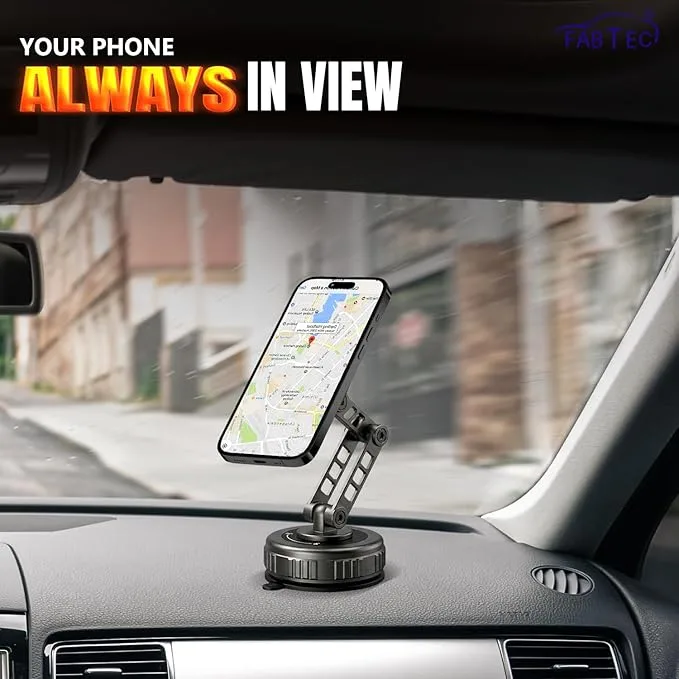 FABTEC Multi-Angle Magnetic Mobile Holder with Vacuum Suction Cup | Strong 360° Adjustable Stand for Car Dashboard, Mirrors, Kitchen & Gym Surfaces | Universal Locking Mount for All Smartphones