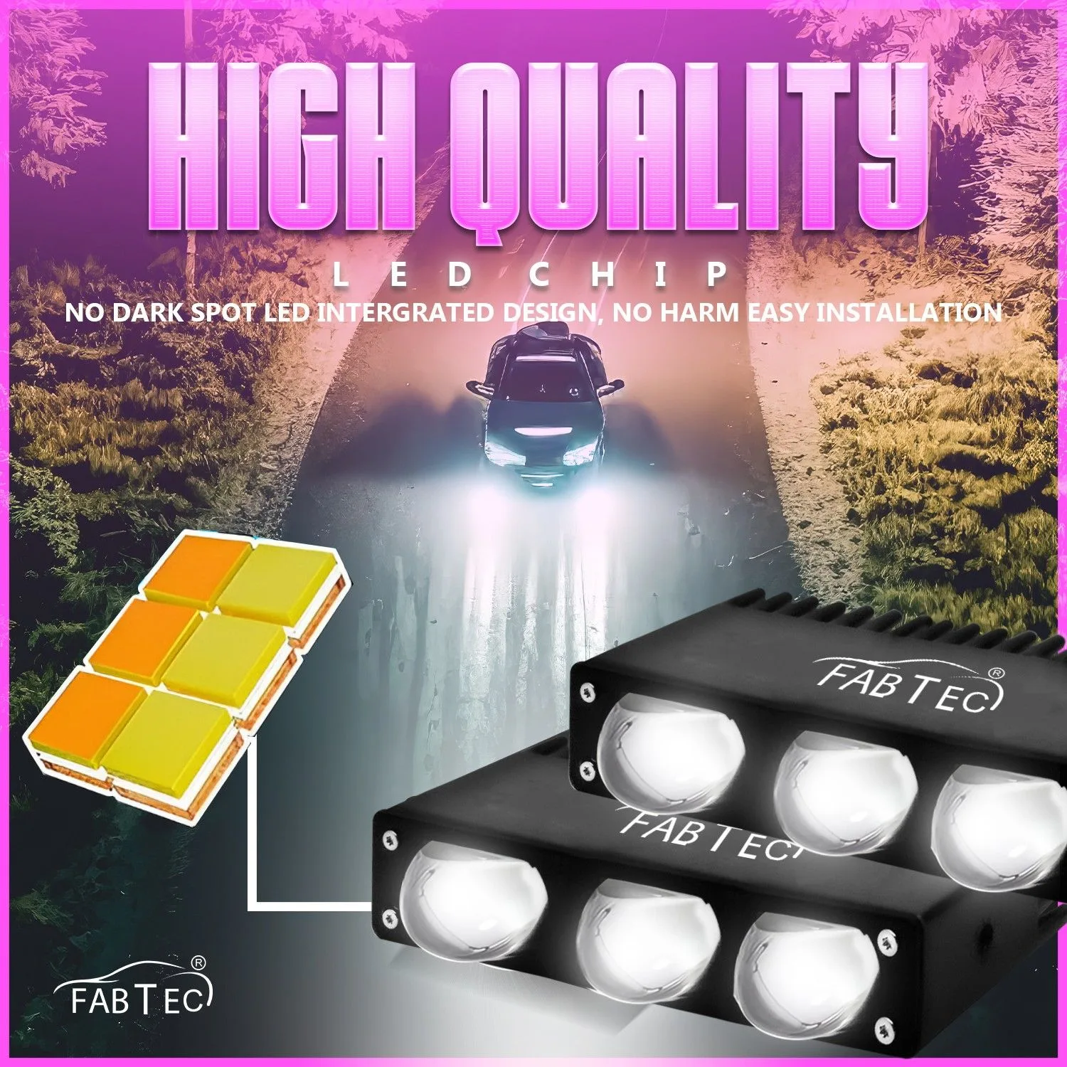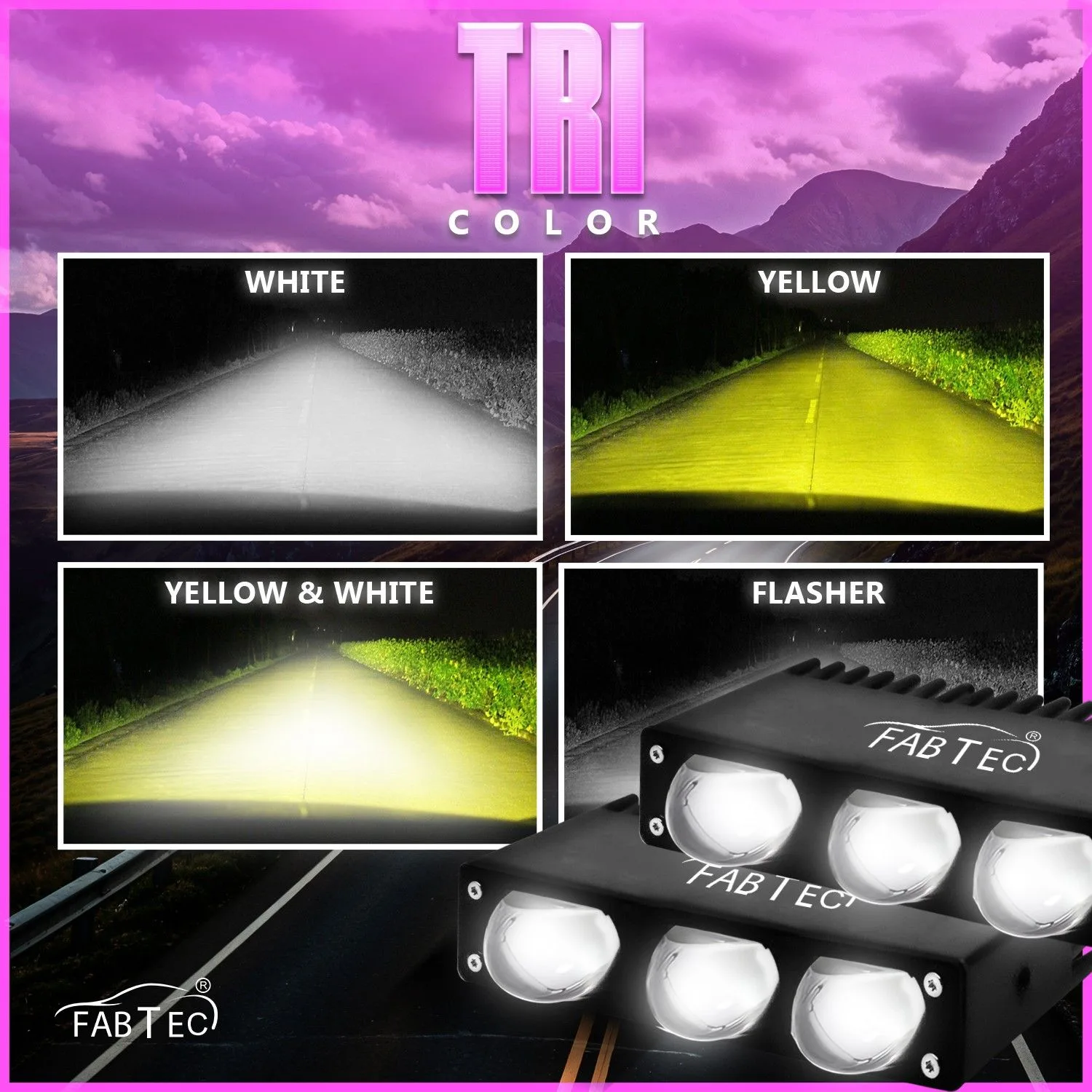 FABTEC T1 Hidden Drive 100W 3 Led Bumper Projector Fog Lights, Super Bright 12000LM White+Yellow Dual Beam + Flasher Spot Beam Fog Lights for Cars (Set of 2)