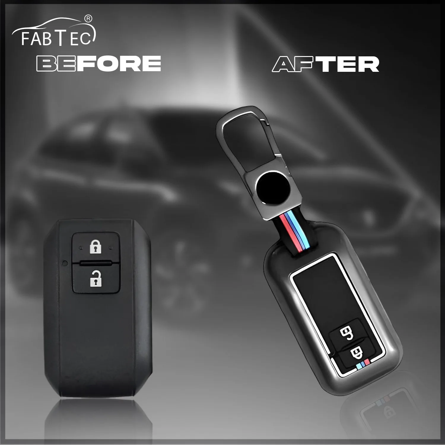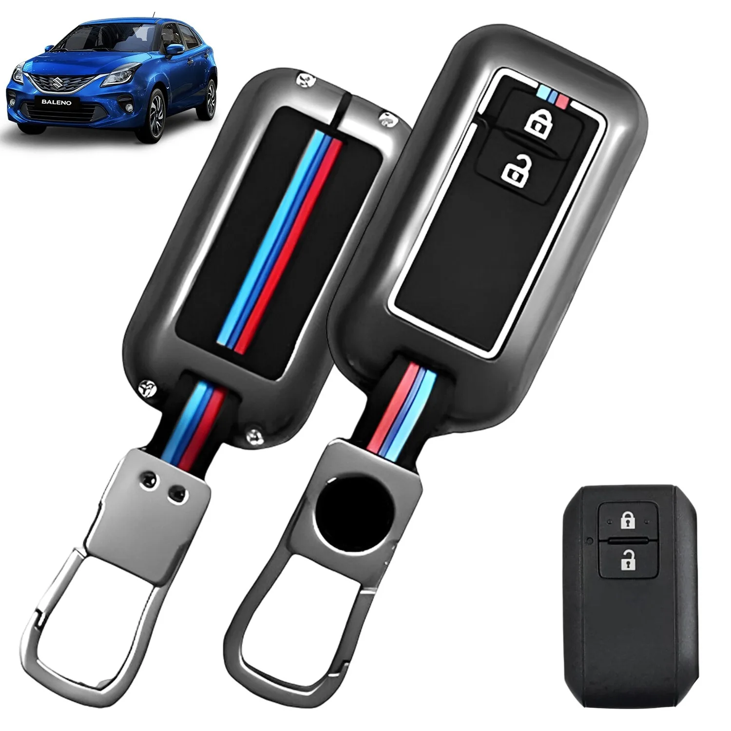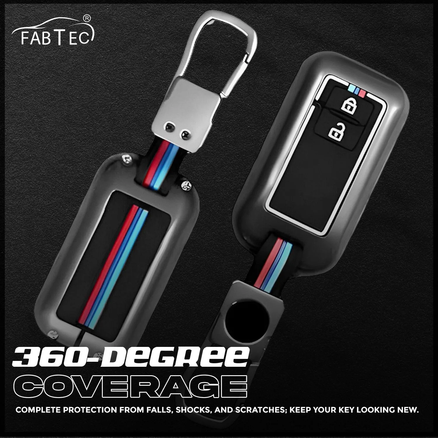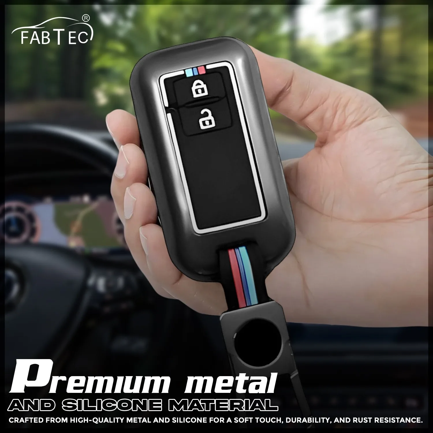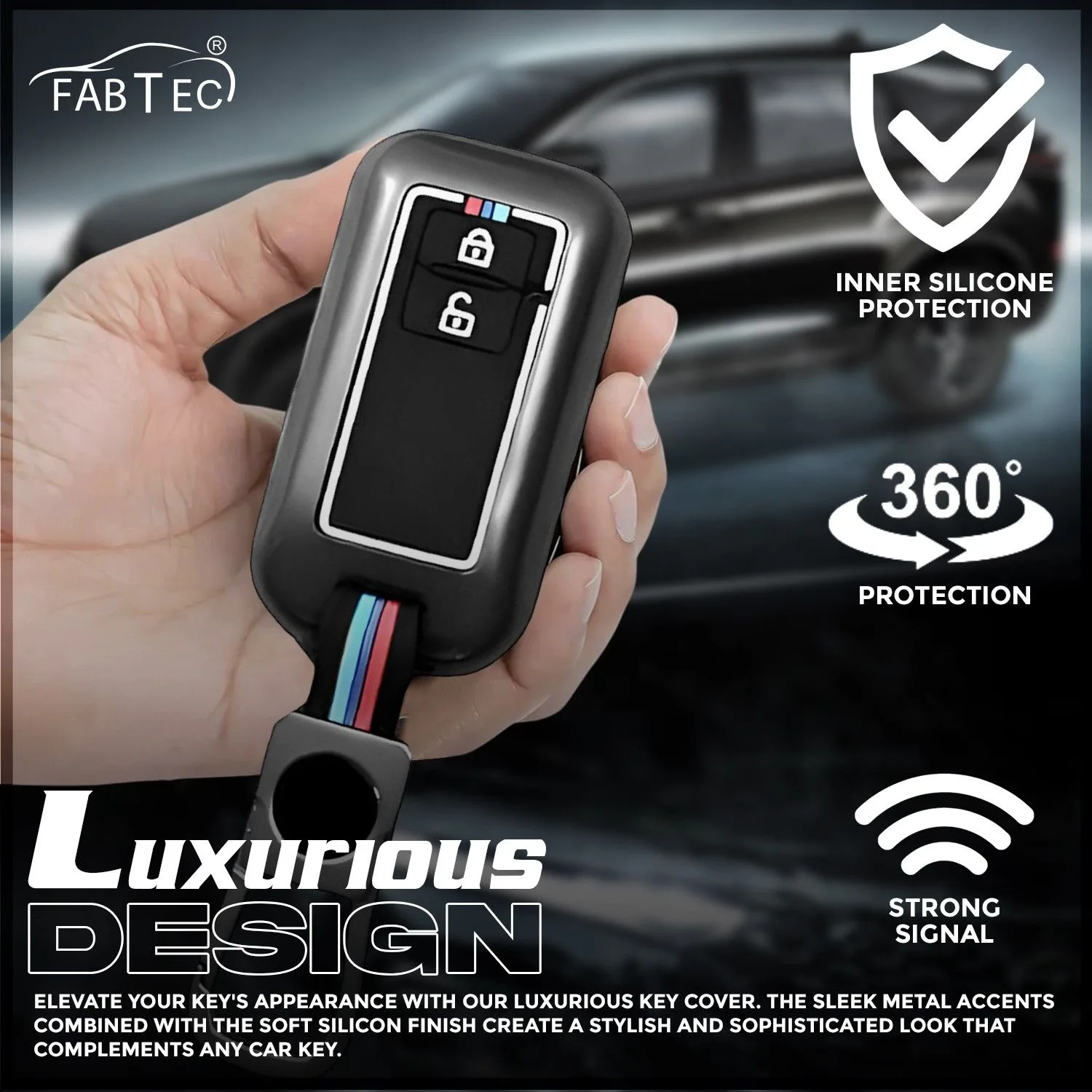 FABTEC Car Key Cover Compatible with Maruti Suzuki Baleno | Grand vitara | Brezza | Jimny | Ertiga | Fronx | Swift dzire | Metal Silicone TPU Protective Shell with 2 Smart Button (Black)
