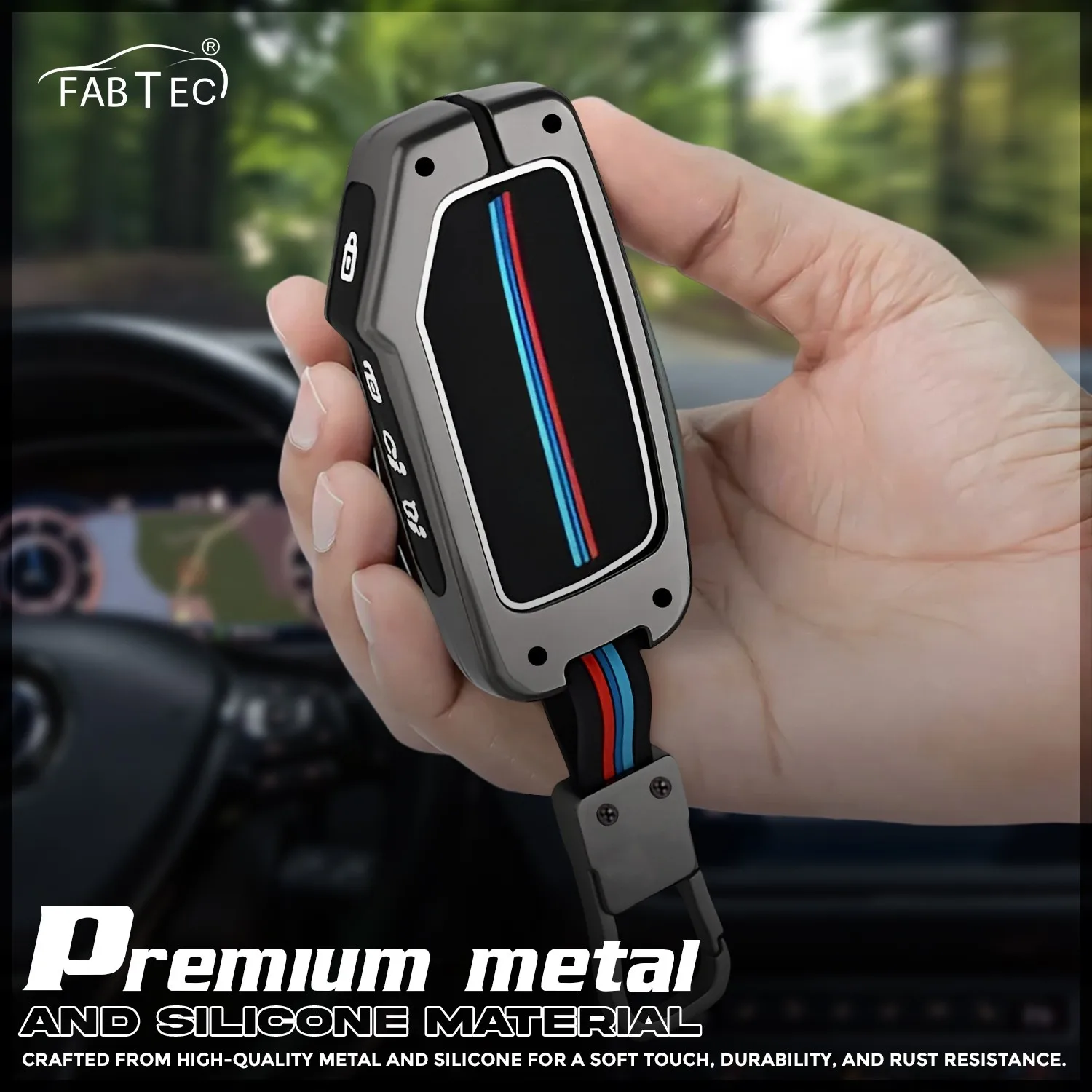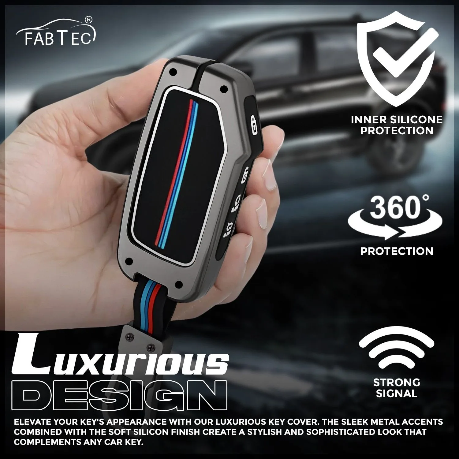 FABTEC Premium car Key Cover Compatible with Kia Seltos 2024-2023 Facelift HTX | Carens Clavis X Line | Sonet Facelift | Metal Silicone TPU Protective Shell with 4 Smart Flip Button (Black)